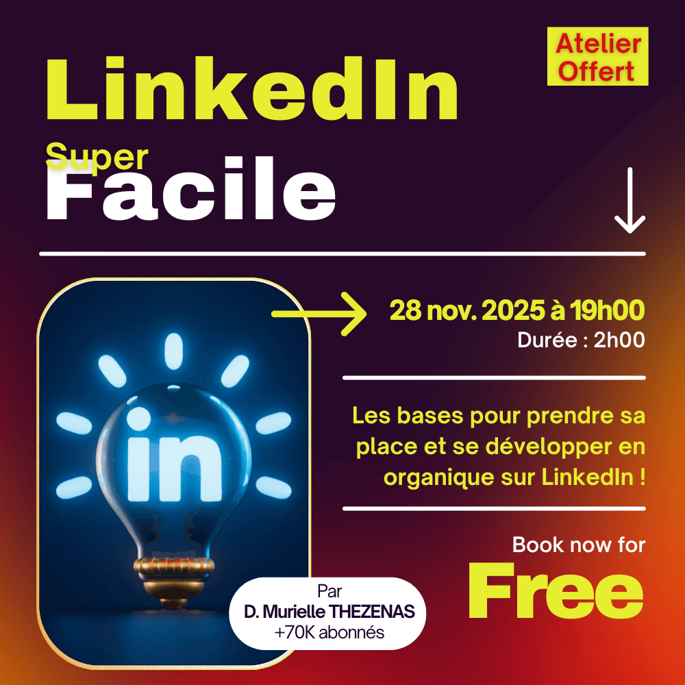 🟡Animé par Dr. Murielle THEZENAS : +70K abonnés Créatrice de LK4B (LinkedIn for Business) : une approche qui décomplexe les entrepreneures / porteurs de projets...